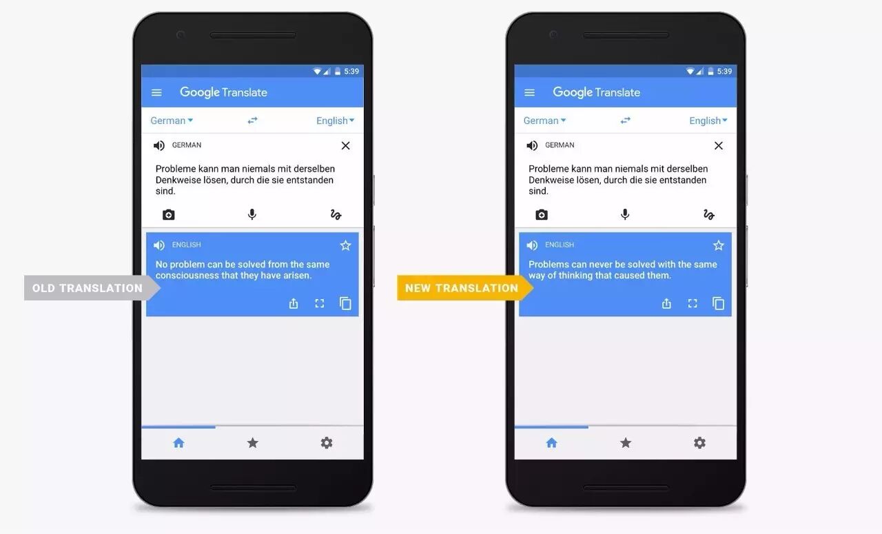 起初,Google 开拓性地推出了大型统计机器翻译(Large-scale Statistical Machine Translation),建立统计学模型来对文本进行翻译。为达到更精准的翻译结果,Google 翻译一直在努力改进翻译机制。